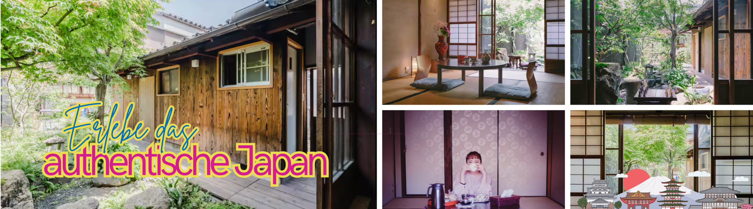 Übernachte am Meer, in den Bergen, in einem traditionellen Holzhaus mitten in Kyoto…
